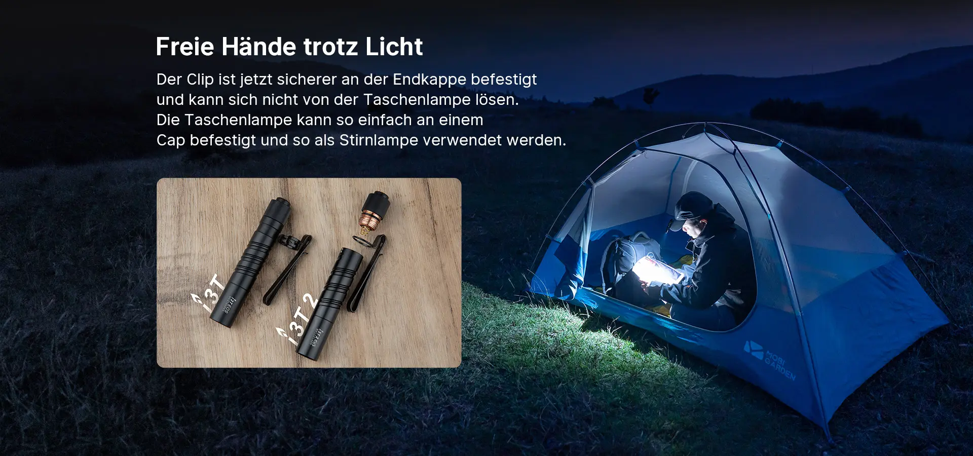 ● Verbesserter Pocketclip: Mit dem neuen Pocketclip kann die Taschenlampe tiefer in die Tasche gesteckt werden und ist durch ihr kompaktes Design fast unsichtbar.