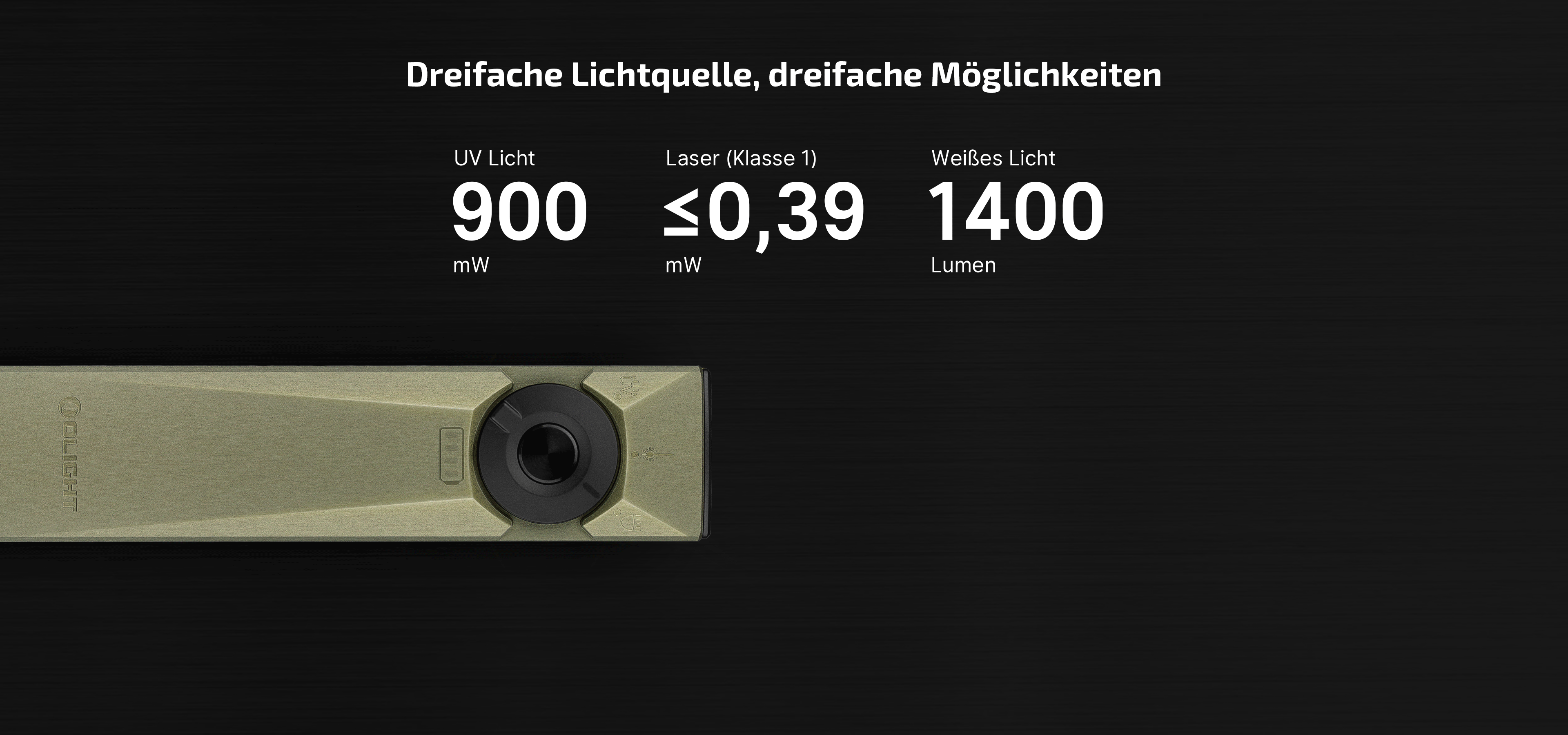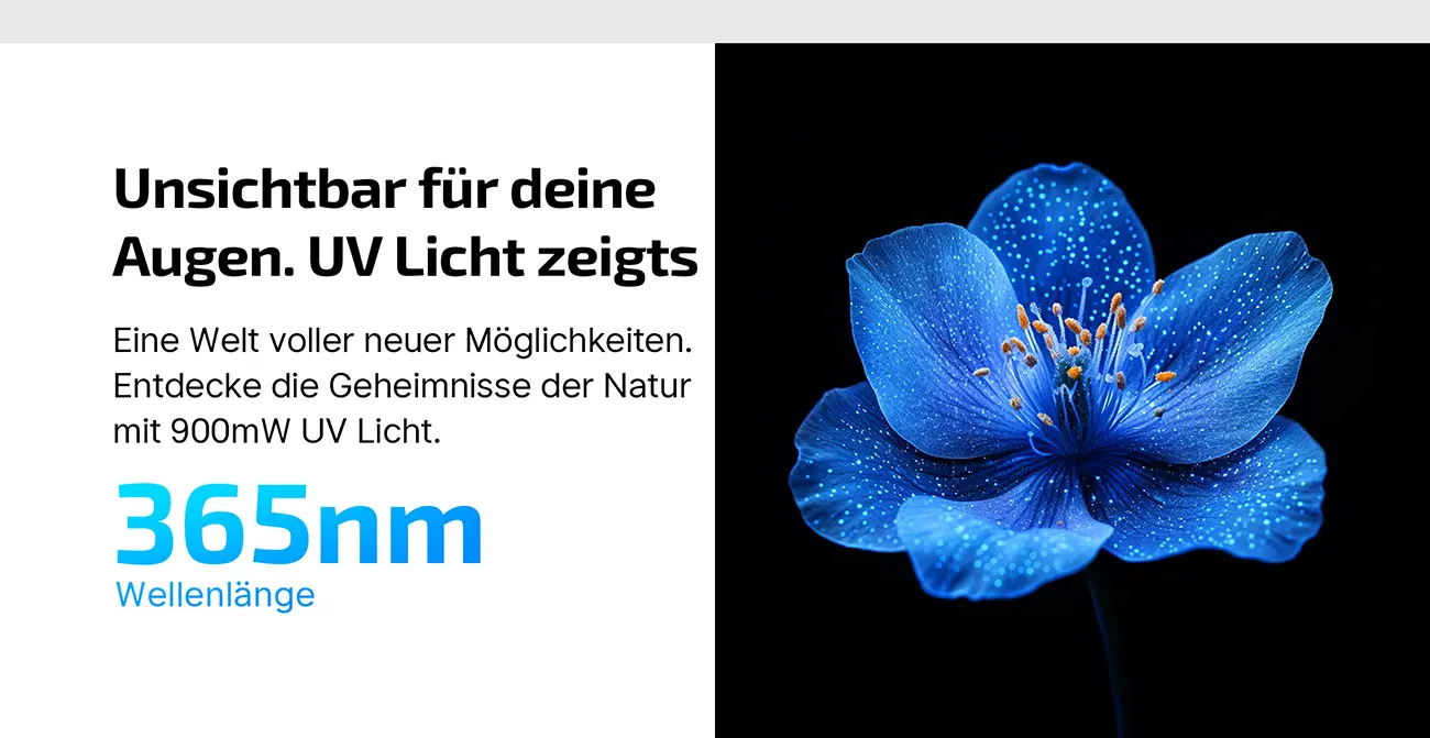 ● 900mW UV Licht: Leistungsstarkes UV Licht eignet sich hervorragend zur Erkennung von Falschgeld, zur Identifizierung von Mineralien und zur Überprüfung der Sauberkeit.